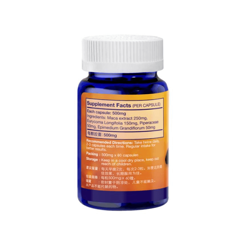 成分:玛卡 250mg、东革阿里 150mg、长胡椒 50mg、淫羊藿 50mg